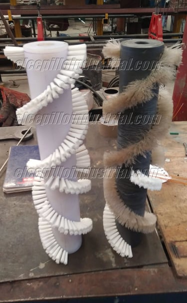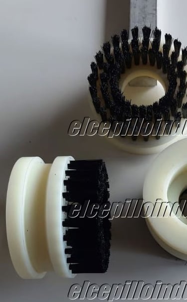 Cepillos en rodillos sobre los cuales se fija la cerda, para cepillado continúo con larga duración, para limpieza continua de áreas amplias.