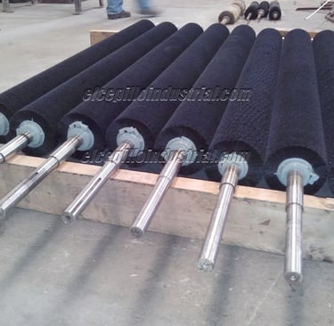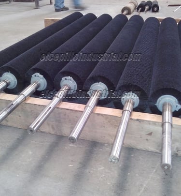 Los cepillos cilíndricos son rodillos ya sean de plástico o acero, sobre los cuales se fija la cerda, usados para cepillado continúo con larga duración, como en lavadoras de lámina o vidrio, autolavados, limpieza de bandas transportadoras, recubrimientos cerámicos y superficies planas en general. También se usan como soporte de película plástica para su perforado, etc. Se hacen en diámetros desde 2" o 50mm hasta 40" o 1 metro, y largos desde 3" o 80mm hasta 120" o 3 metros, para trabajo a hasta 1000 RPM.