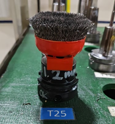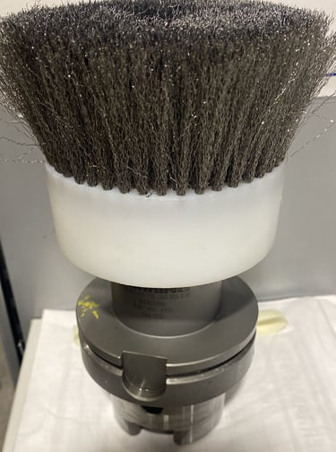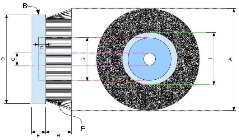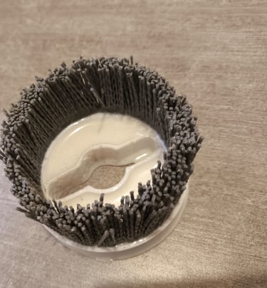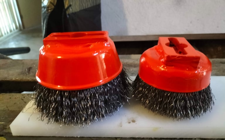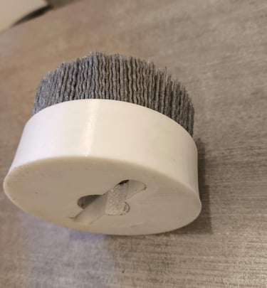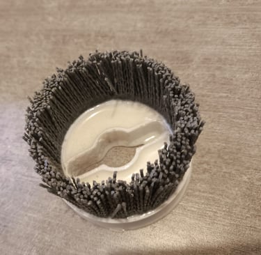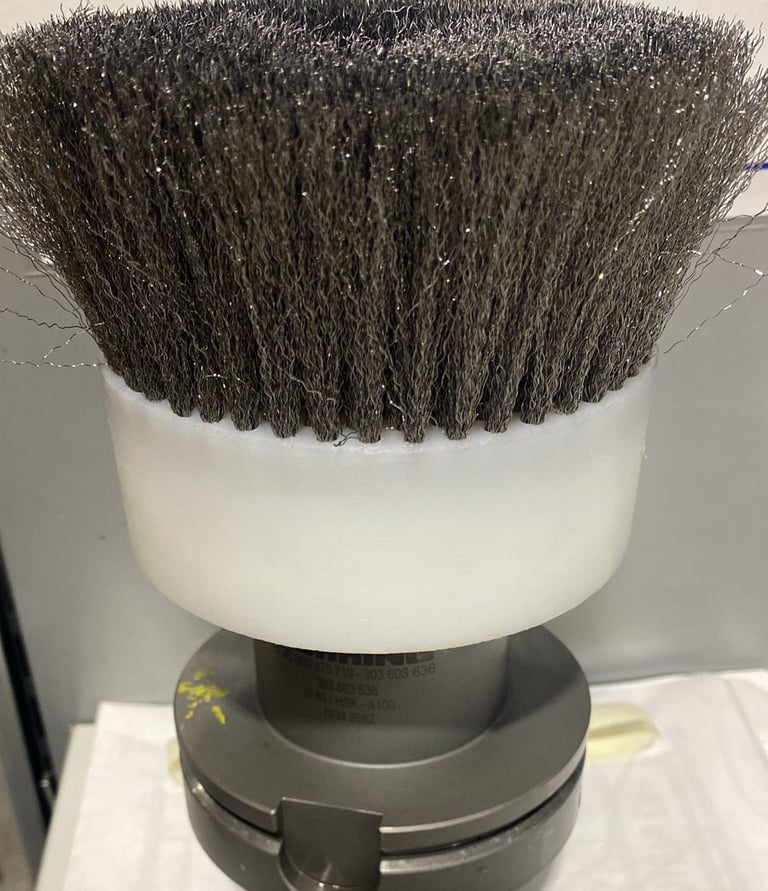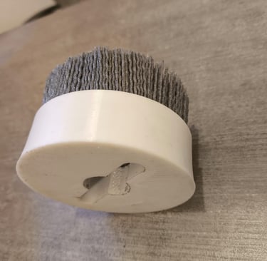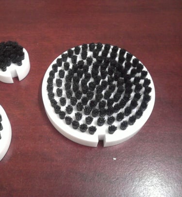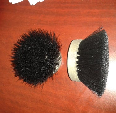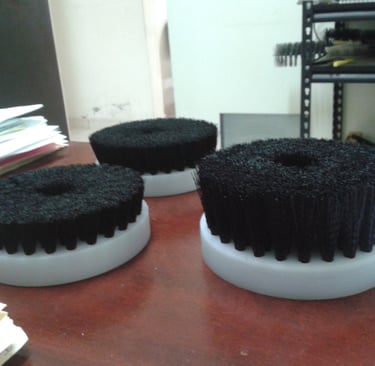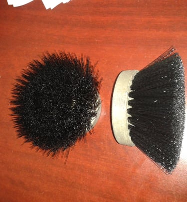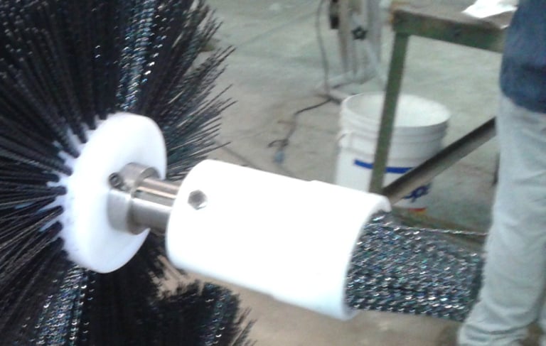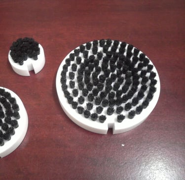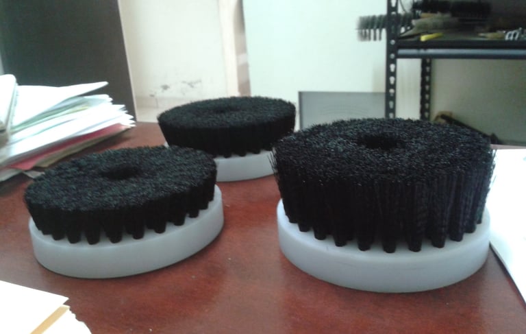 Los cepillos circulares se hacen insertando cerda en un disco o buje con la cerda paralela al eje de rotación. Tienen la ventaja de que la dirección de cepillado de las cerdas cambia según la posición del cepillo.