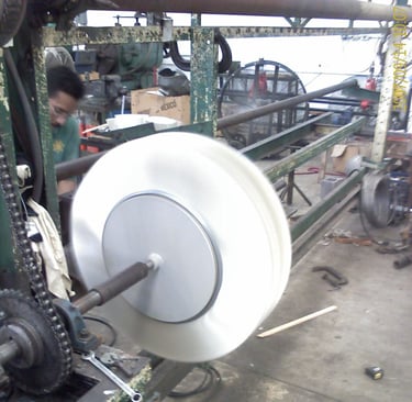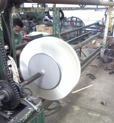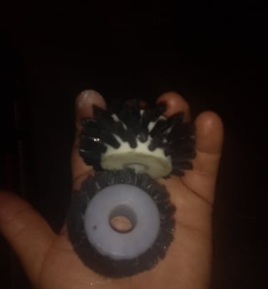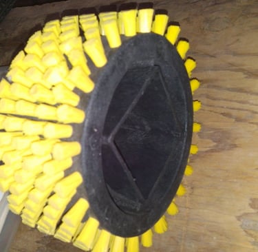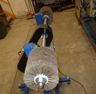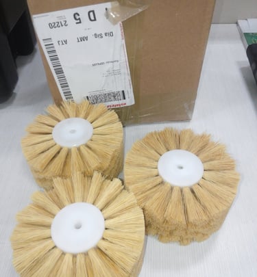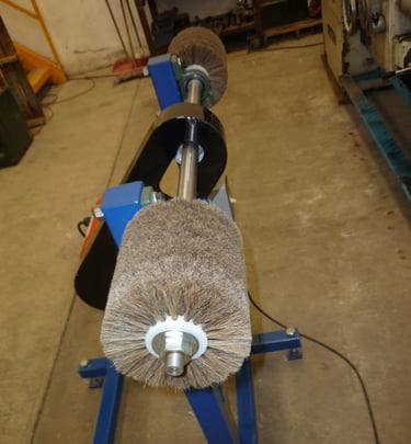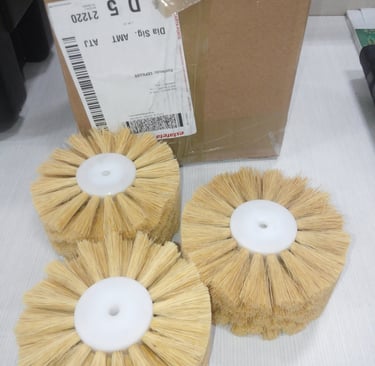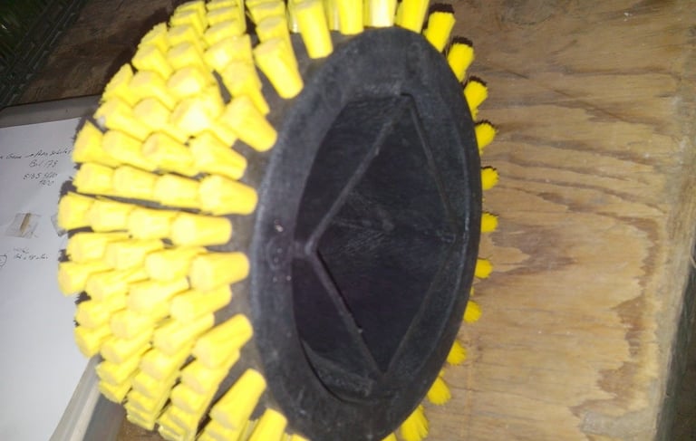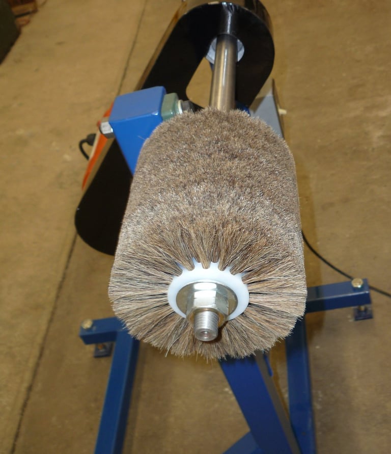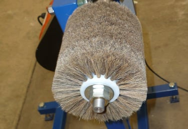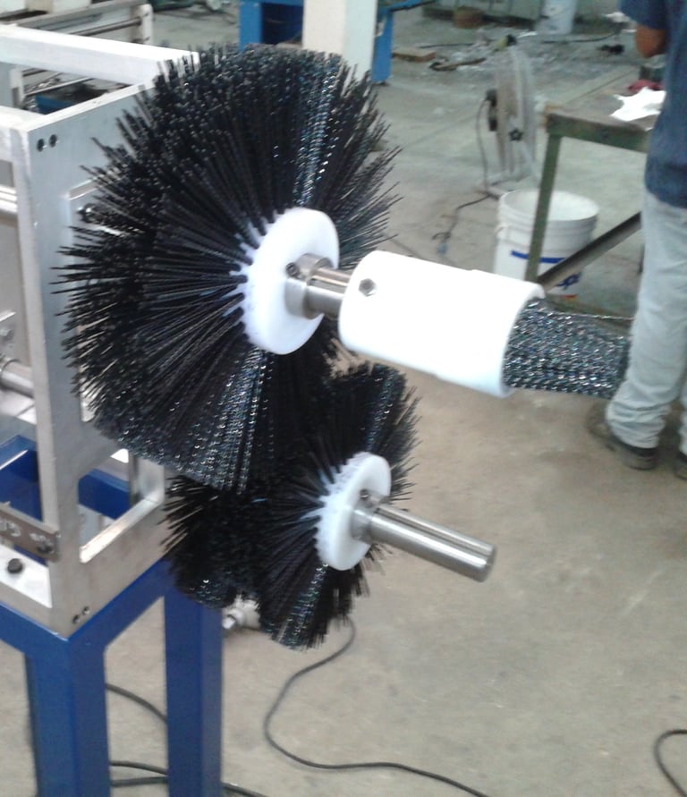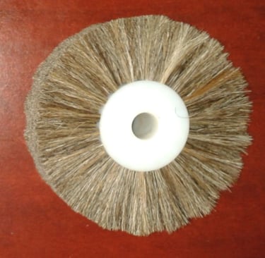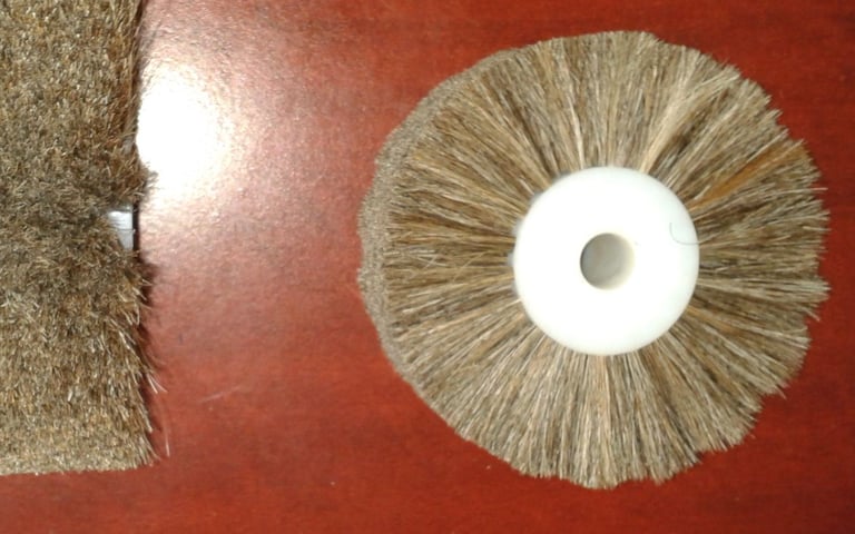 Los cepillos radiales generalmente se conforman insertando cerda en un disco o buje con la cerda perpendicular al eje de rotación.